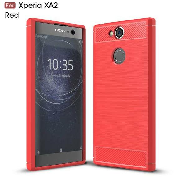 Sony Xperia XA2 piros szénszálas (Carbon Fiber) ütésálló TPU tok Piros, TPU, PartOcean
