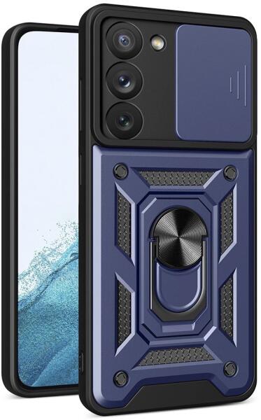 Samsung Galaxy S23 Hybrid Armor Camshield tok kameravédő kék A Hybrid Armor Camshield tok egy termoplasztikus és tartós anyagból készült, amely acélszerű megjelenésű. A tok a Samsung Galaxy S23-hoz lett adaptálva, tökéletesen védi a telefont az esésből vagy karcolásokból eredő károktól (például zsebben hordott kulcsok által okozott sérülésektől). A tok hátulján húz