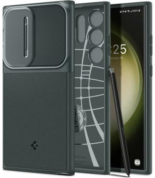 Spigen Optik Armor Samsung Galaxy S23 Ultra ütésálló tok, kameravédővel, Zöld