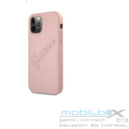Guess PU Saffiano Vintage Script Apple iPhone 12/12 Pro hátlap tok, rozéarany