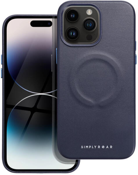 Roar Leather Mag tok iPhone 14 Pro Max, sötétkék A Roar Leather Mag Case a MagSafe technológia támogatásának, a kiváló minőségű, belső béléssel ellátott ökobőrnek és az alumínium gomboknak köszönhetően egyesíti a funkcionalitást és az esztétikát. A tok alapvető előnye az innovatív MagSafe technológia támogatása, amely lehetővé teszi a telefon töltését kábele