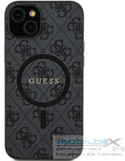 Guess 4G Collection Leather Metal Logo Samsung Galaxy S24 mágneses tok, fekete