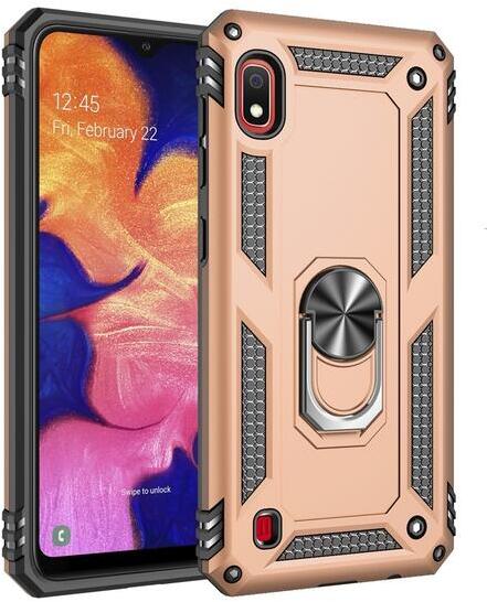 Samsung Galaxy A10 arany hibrid PC TPU Műanyag hátlap tok, közepesen ütésálló, defender, szilikon belső, telefontartó gyűrű TPU, PartOcean, Arany