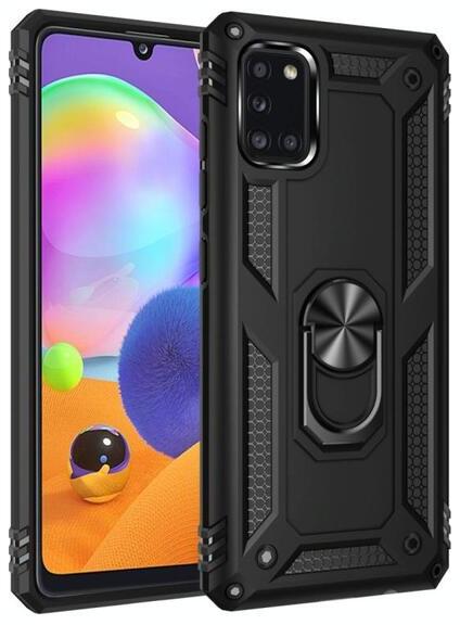 Samsung Galaxy A31 fekete hibrid PC TPU Műanyag hátlap tok, közepesen ütésálló, defender, szilikon belső, telefontartó gyűrű Fekete, TPU, PartOcean