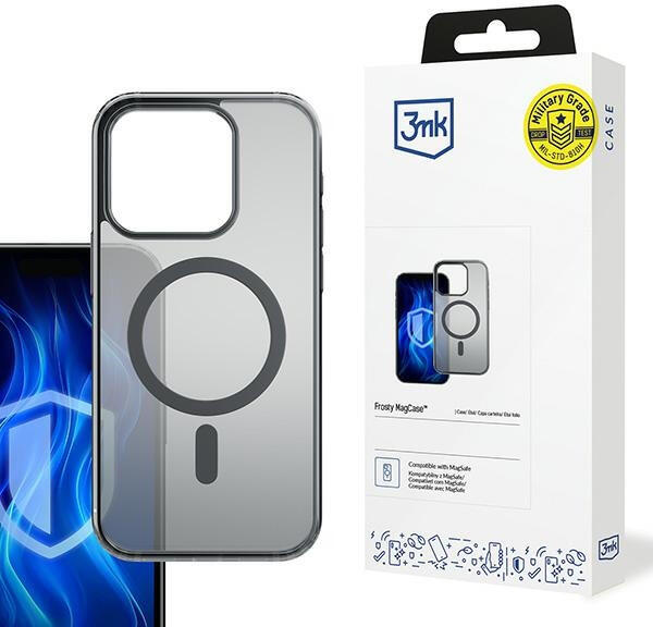 3MK Frosty MagCase iPhone 16 Pro Max tok, fekete 3mk Frosty MagCase Matte lightness, reliable durabilityFull Compatibility with MagSafe The MagSafe system provides incredible comfort. Therefore, when searching for a smartphone case with MagSafe, it's worth choosing a model that is 100% compatible. Like the 3mk Frosty MagCase! The case makes it easier to use your favorite magnetic accessories, such