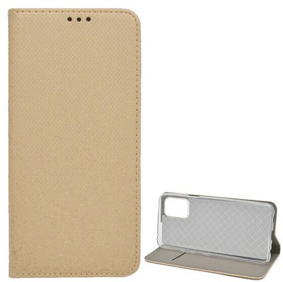 Tok álló, bőr hatású (FLIP, oldalra nyíló, asztali tartó funkció, rombusz minta) ARANY [LG K62 (LMK525)]