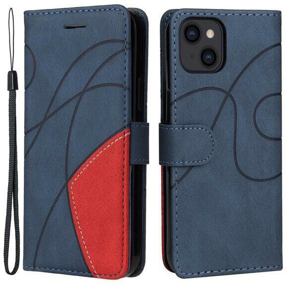Apple Iphone 14 kétszínű oldara nyíló naptár, notesz tok kék, Kék, Oldalra nyíló, PartOcean