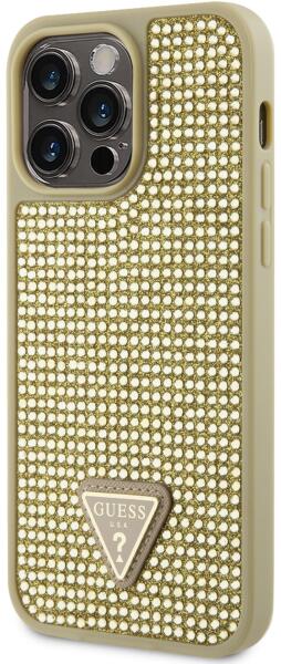Guess Strasszok Háromszög Fém Logó védő telefontok egy olyan kombinációban, ahol a hátlap apró kövekkel borított, és a rugalmas PU oldalakkal rendelkezik. A tok oldalai rugalmasak és tökéletesen védik a telefont véletlen esések esetén. Az egész tok úgy van tervezve, hogy megvédje a telefont a portól és szennyeződésektől, valamint a karcolásoktól. Természetesen minden