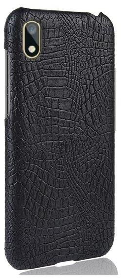 Műanyag telefonvédő (bőr hatású, krokodilbőr minta) FEKETE [Honor 8S (2020)]