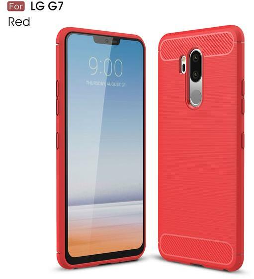 LG G7 ThinQ piros szénszálas (Carbon Fiber) ütésálló TPU tok Piros, TPU, PartOcean
