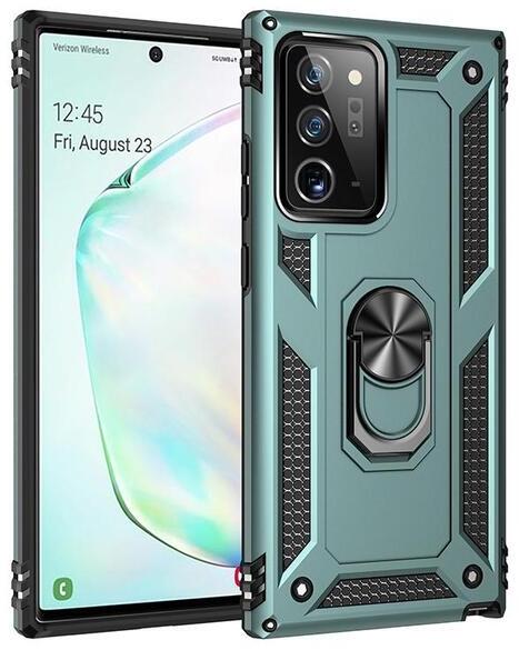 Samsung Galaxy Note20 Ultra zöld hibrid PC TPU Műanyag hátlap tok, közepesen ütésálló, defender, szilikon belső, telefontartó gyűrű Zöld, TPU, PartOcean