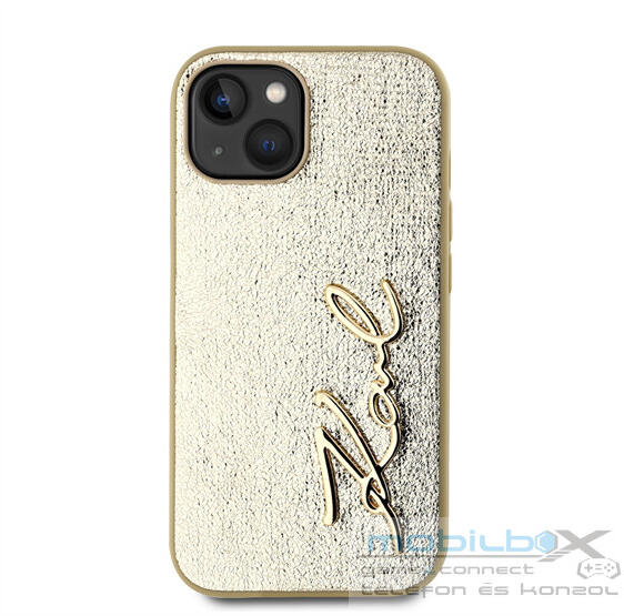 Karl Lagerfeld Wrinkled PU Signature Logo Apple iPhone 14 hátlap tok, arany