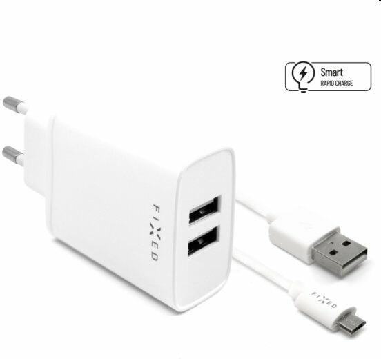 FIXED Hálózati töltő Smart Rapid Charge 2 x USB 15W + kábel USB/micro USB 1m, fehérNULL... Galéria