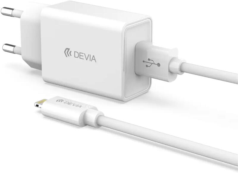 DEVIA SMART USB HÁLÓZATI TÖLTÕ ADAPTER + USB TYPE-C KÁBEL 1 M-ES VEZETÉKKEL - DEVIA SMART SERIES CHARGER SUIT WITH TYPE-C CABLE V3 - 5V/2A - WHITE Kábel: Kábel funkciók: USB Type-C 2.0 Teljesítmény: 2A (MAX) Anyag: Tiszta rézhuzal + PET Interfész típusa: C-típusú portok Hossza: 1 M . Töltõ Anyag: PC + ABS Bemenet: 110-240V Kimenet: 5V-2A Biztonsági tanúsítvány: CE, FCC, UKC
