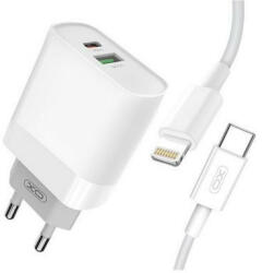 Wall Charger with Lightning Cable XO L64 20W, QC3.0, PD (white) XO L64 20W, QC3.0, PD (fehér) hálózati töltő + Lightning kábel (fehér). Töltsön akár 2 eszközt egyszerre, és időt takaríthat meg. Az XO L64 töltő 2 port (1x USB-C, 1x USB-A) használatát teszi lehetővé, amelyek közül az egyik támogatja a PD3.0 gyorstöltést, a másik pedig a QC3.0. A készülék akár 18 watt te