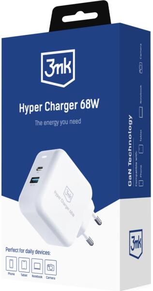 Két USB-port bármilyen eszköz töltéséhezA két USB -A és -C port lehetővé teszi két eszköz egyidejű töltését. Két mobiltelefont szeretne egyszerre tölteni? Nem találhat jobb megoldást, mint a Hyper Charger 68W-os töltőnk. Tökéletesen megfelel az irodai alkalmazásokhoz is. Ha a töltőnket használja, biztos lehet benne, hogy mobilja mindig teljesen fel van töltve, és szab