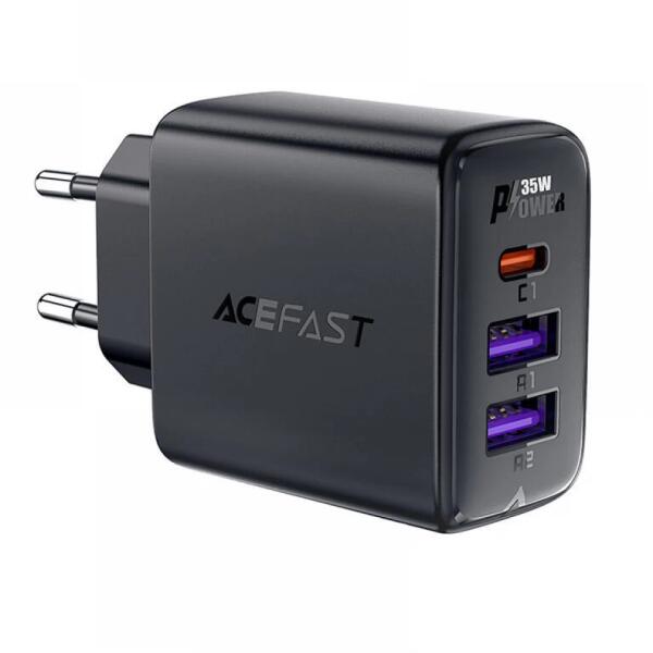Acefast A57 töltő Power Delivery technológiával, USB-A és USB-C csatlakozókkal, GaN technológiával, 35W, 3 porttal - fekete színben A modern Acefast A57 töltő lehetővé teszi három eszköz egyidejű, gyors és stabil töltését. Két USB-A és egy USB-C porttal rendelkezik, és kompatibilis a laptopokkal, okostelefonokkal, táblagépekkel és játékkonzolokkal. A GaN technológia me
