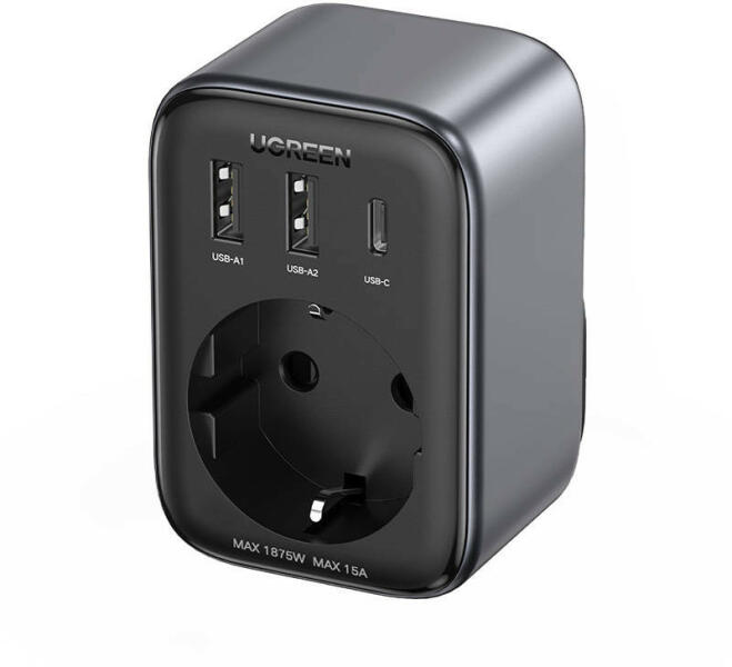 Utazási adapter EU-USA csatlakozóra UGREEN CD314 2xUSB-A, 1xUSB-C Az EU-USA UGREEN CD314 utazási adapter tökéletes az utazáshoz - lehetővé teszi a kiválasztott eszközök kényelmes használatát külföldön. További portokkal is rendelkezik (2xUSB-A, 1xUSB-C), így több eszköz egyidejű csatlakoztatását teszi lehetővé. Támogatja a 30W-os PD / QC 3.0 gyorstöltést is, és széle