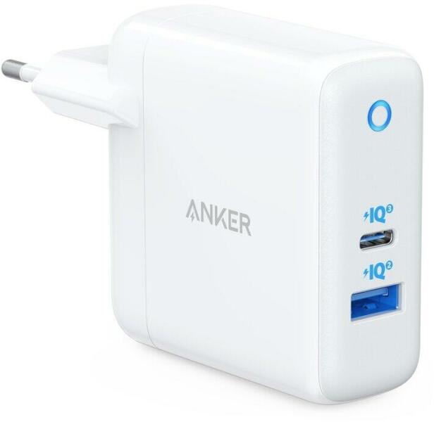 Anker PowerPort PD+2 hálózati gyorstöltő adapter, USB-A 15W + Type-C, 20W, fehér Anker PowerPort PD+2 hálózati gyorstöltő adapter, USB-A 15W + Type-C, 20W, fehér