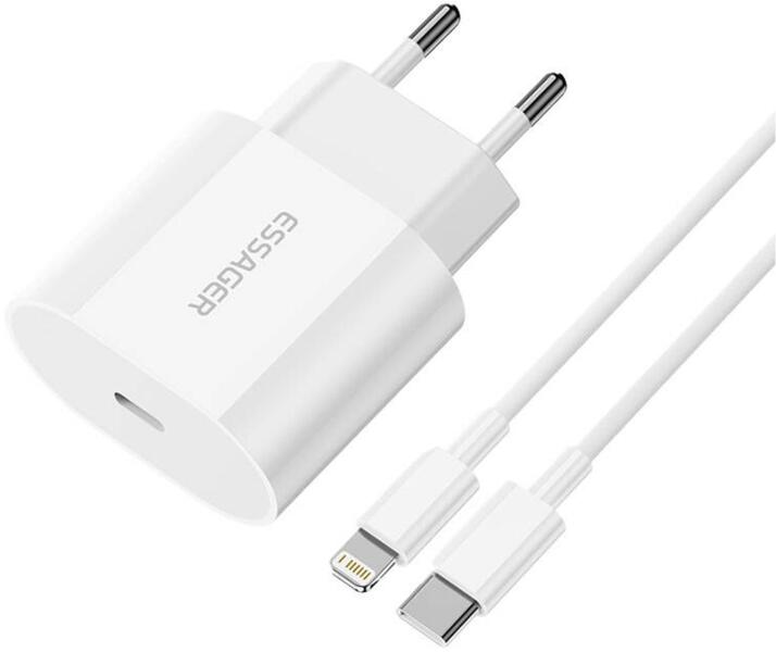 Charger USB-C 20W Essager with USB-C to Lightning cable (white) The Essager PD20W USB-C Charger, combining innovative technology and high-quality materials, is the perfect solution for demanding users. It not only provides fast and safe charging but also takes care of your device's well-being by intelligently adjusting the voltage. The package includes a Lightning cable. Intelligent Voltage Adjust
