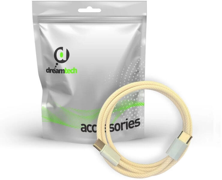 Dreamtech PD fonott kábel sárga USB-C / USB-C 3A 60W 1M A Dreamtech PD fonott kábel kiemelkedő tartóssággal, gyors töltési és adatátviteli képességgel rendelkezik. Tökéletes választás mindennapi használatra, ha megbízható, időtálló, és nagy teljesítményű USB-C kábelt keresel, amely akár 60W-os töltést is támogat. A fonott kivitel extra védelmet nyújt a kopás ellen