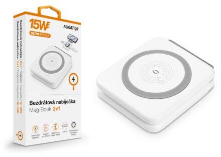 Aligator Mag-Book 2in1 15W vezeték nélküli töltő iPhone és Apple Watch készülékekhez modern MagSafe technológia támogatásával A modern MagSafe technológia támogatásával, 15 W-os prémium vezeték nélküli Aligator Mag-Book 2 az 1-ben töltő 15 W-os teljesítménnyel könnyedén tölti egyszerre iPhone-ját és Apple Watch-ját. Használja a mobiltelefon vagy a klasszikus Qi tech