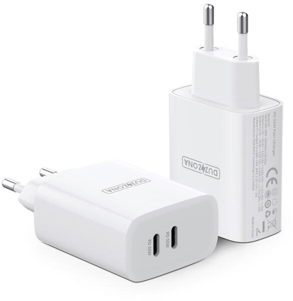 DUZZONA T4 hálózati töltő GaN technológiával. A kompakt és könnyű T4 töltő akár 35 W töltési teljesítményt kínál 2 kimeneti aljzaton. Számos gyorstöltési szabvány támogatása teszi ezt a töltőt ideálissá számos alkalmazáshoz. Anyaga: PCMéretek: 89,9x46x26,6mmInterfészek: 2x USB-CSúly: 70gKompatibilis gyorstöltő rendszerek: PPS, PD 3.0, QC 3.0, FCP, AFCKimeneti tel