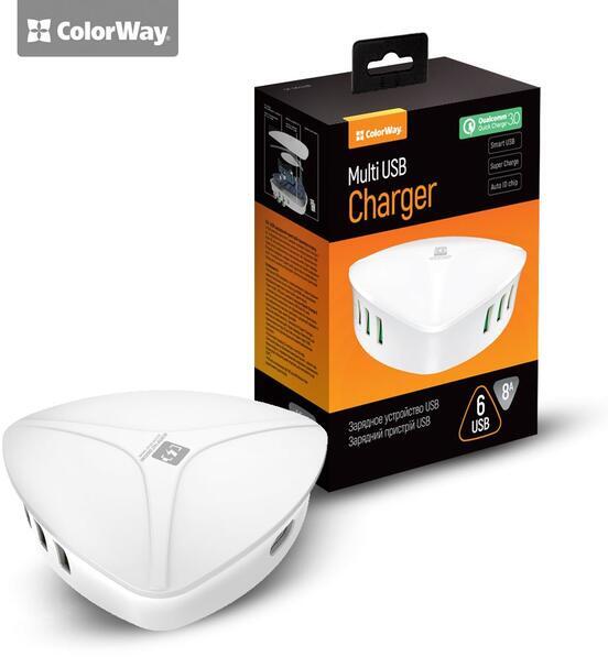 ColorWay 6 x USB Quick Charge 3 töltőállomás fehér (CW-CHS06QW) 1 év, Fehér