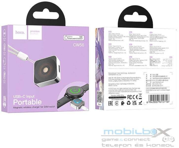 Hoco inductive charger that allows for inductive charging of the Samsung Galaxy Watch smart watch. Top up your smartwatch's battery with a handy, cable-free charger. The charger is compatible with Samsung smartwatches that support inductive charging . Made of a combination of aluminum alloy and PC , it is resistant to damage and ensures comfortable work. Specification: Material: aluminum alloy + P