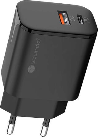 Sturdo kompakt gyorstöltő mobiltelefonokhoz minden USB-C és USB-A töltőcsatlakozóval rendelkező eszközhöz. Akár 3A teljesítményű. lKét kimeneti port biztosítja az összes kábellel való kompatibilitást.