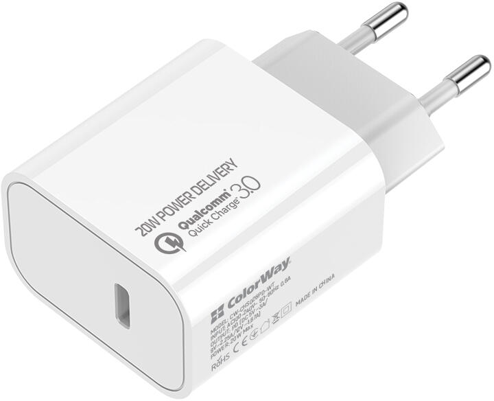 TÖLTŐ A ColorWay Power Delivery 20 W-os váltóáramú töltő USB-C Power Delivery 3.0 porttal van felszerelve 20 W-os töltéshez. Ideális Apple iPhone 12 Pro / 12 Pro Max / 12 mini / 12 / 11 Pro / 11 Pro Max / 11 / SE / XS / XS Max / XR / X /