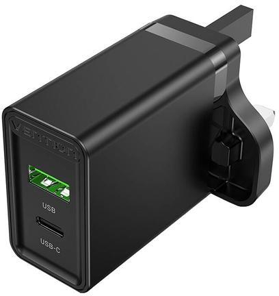 Vention FBBB0-UK USB-A, USB-C mains charger (18W/20W, black) You don't have to limit yourself anymore. The Vention mains charger is equipped with 2 ports (USB-A and USB-C), allowing you to renew the energy of 2 devices at the same time. Its power reaches a maximum of 20 watts, and with support for fast charging protocols, it stands out for its exceptional performance. It also provides a range of s
