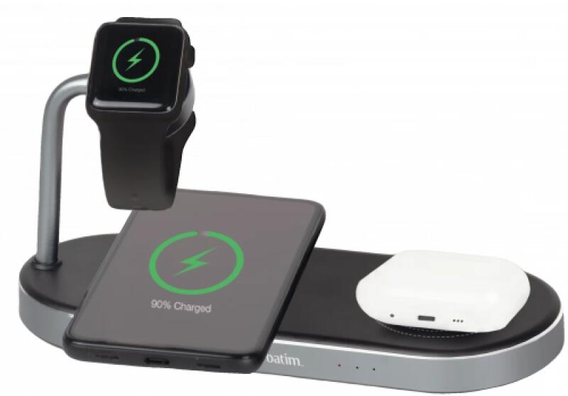 A Verbatim 3 az 1-ben töltőállomással minden eszközét vezeték nélkül töltheti fel egyszerre. Vezeték nélkül töltse fel Apple Watch-ját és két iPhone-ját (8 vagy újabb) vagy más Qi-tanúsítvánnyal re...