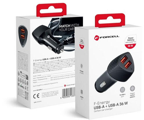 Rendkívül funkcionális autós töltő a FORCELL CARBON sorozatból. Kettős USB töltőporttal felszerelve. Támogatja a QC 3.0 gyorstöltési protokollt. Többszintű biztonsági rendszerrel rendelkezik. A FORCELL CC50-2A autós töltő dupla USB porttal van felszerelve , melynek köszönhetően akár két készüléket is csatlakoztathat és tölthet egyszerre. Kiváló választás több eszk