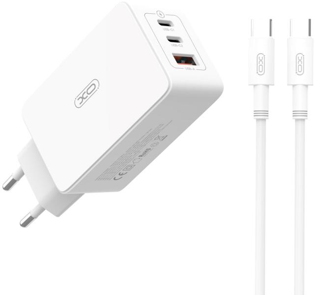 Specifikáció A csomagolás típusa: doboz Márka: XO Szín: fehér Csatlakozó: USB-A (aljzat), USB-C (női), USB-C (férfi) Kimeneti csatlakozók száma: 3 db. Maximális teljesítmény [W]: 65 W Maximális áramerősség: 3 A Gyors töltési szabvány: PD + QC (Power Delivery és QuickCharge) Kábel a készletben: Igen Szavatosság: 12 hónap Termékleírás A XO CE13 egy fejlett 65W-os fali t