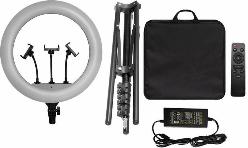Selfie körfény 3 db telefontartóval, 5500 lumenes körfénnyel Távirányító gombkiosztása: Pir os gomb: Éjszakai mód ON/OFF: BE/KI kapcsolás Felfelé nyíl/Lefelé nyíl: Fényerő fel és Fényerő le Balra nyíl/Jobbra nyíl: Színhőmérséklet állítása Auxiliary Light Source: Külső fényforrás CT- / CT+: Színhőmérséklet állítása Section: Színhőmérséklet gyors állít