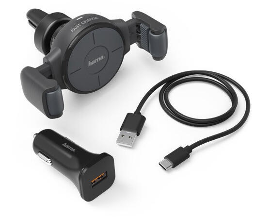 Hama 201677 "FC-10 FLEX" FIC E3 univerzális autós mobiltartó vezeték nélküli töltővel Univerzális , szellőzőrácsra rögzíthető vezeték nélküli töltő Okostelefonok vezeték nélküli töltésére Qi technológiával Garantált maximális töltési sebesség a készülékre optimalizált 5W, 7,5W és 10W kimeneti teljesítménnyel Az optimalizált töltési folyamat kíméli az ak