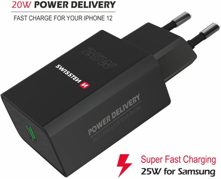 A Swissten hálózati töltő USB-C kimenettel alkalmas otthoni és irodai használatra a Samsung és Apple telefonok töltésére. Támogatja a Samsung Super Fast Charging és a Power Delivery for Apple töltést. A hagyományos Power Delivery PDO formátum mellett az új, kíméletesebb Power Delivery PSS formátumot is kínálja az akkumulátor élettartamának meghosszabbítása érdekében. A