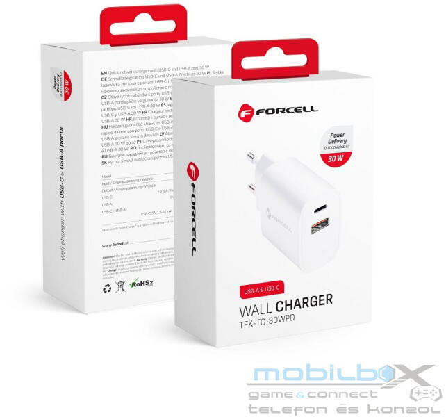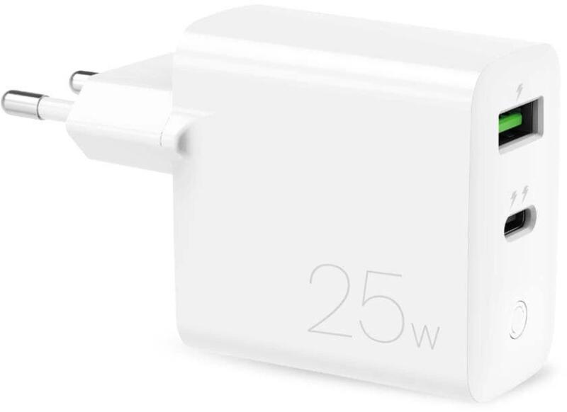 Modern and fast wall charger with Type -C and USB-A ports, capable of delivering up to 30 W of power. It supports both Power Delivery and Quick Charge technologies, allowing for fast charging of compatible devices. Fast charging two devices at the same time Two ports - USB - C and USB-A - can charge two devices simultaneously providing up to 15 W of power. Type-C provides 30 W of power and USB-A 1