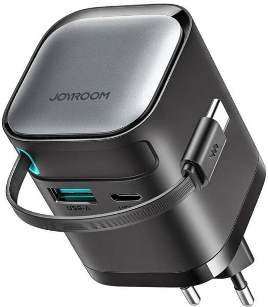 Joyroom JR-TCL02 GaN töltő akár 65W teljesítményű USB-A és USB-C csatlakozóval és beépített USB-C kábellel - fekete színben A Joyroom JR-TCL02 GaN töltővel nem csak gyorsan tölthetsz egyszerre akár három eszközt is, de hihetetlenül sokféle eszközzel kompatibilis. Akár 65W-os teljesítményével a legtöbb laptopot képes feltölteni - teljes sebességgel! A beépített 70 cm