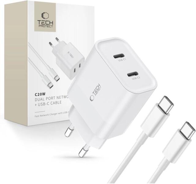 Kényelmes és praktikus szett a Tech-Protect márkától, amely egy C20W töltőt és egy Type-C csatlakozós kábelt tartalmaz. A kétportos USB-C töltő (PD20W) lehetővé teszi, hogy gyorsan és ami a legfontosabb, biztonságosan töltsük fel a mobil eszközöket. A Power Delivery technológia minimálisra csökkenti a töltési időt azáltal, hogy azonnal növeli az eszközök teljesítmé
