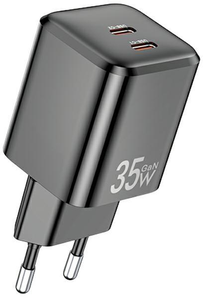 Hoco wall charger with fast charging function and triple ports: 2 USB-C and USB-A. It allows you to quickly charge mobile devices. Comes with a 1 meter USB-C - USB-C cable. The charger is equipped with triple ports: 2 USB-C (35W) and USB-A (22.5W) allow you to charge 3 devices at the same time. The product supports PD, QC 3.0, PPS, FCP, AFC and other fast charging solutions. Made of flame-retardan