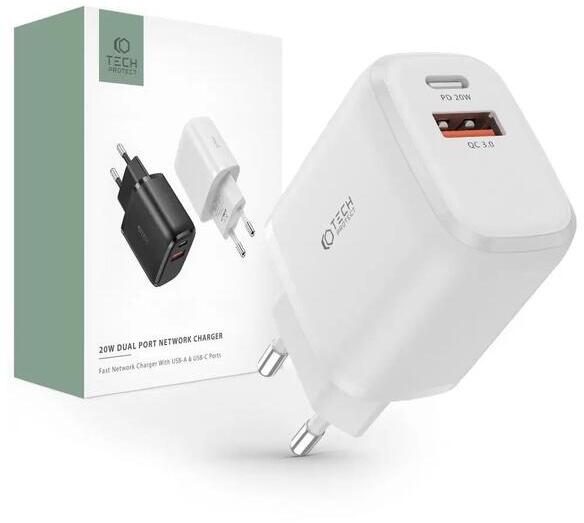 Tech-Protect C20W hálózati töltő adapter PD 20W / QC3.0 fehér (126510) 1 év, Fehér