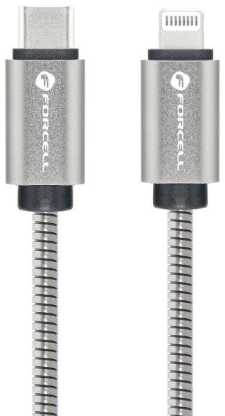FORCELL kábel Type C to iPhone Lightning 8-pin QC3.0 PD 27W Metal C238 1m - ezüst A Forcell a GSM-kiegészítők európai márkája, amely a stílusra és a kényelemre összpontosít. Termékei tökéletesek azok számára, akik értékelik a kiváló minőséget és az időtlen dizájnt. Adatkábel és töltőkábel Apple márkájú, Lightning csatlakozóval rendelkező készülékekhez. Rozsd