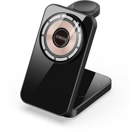 Ez az elegáns, vezeték nélküli töltő dokkoló 15 W-os gyors töltést biztosít iPhone 12 és újabb készülékek, akár 5 W-os töltést Apple Watch 4 és újabb készülékek, valamint AirPods vezeték nélküli töltő tokkal. A MagSafe technológiát kihasználva a töltőpadra helyezheted iPhone-odat a biztonságos és kiegyensúlyozott kapcsolat érdekében. A termék előnyei - Vezet