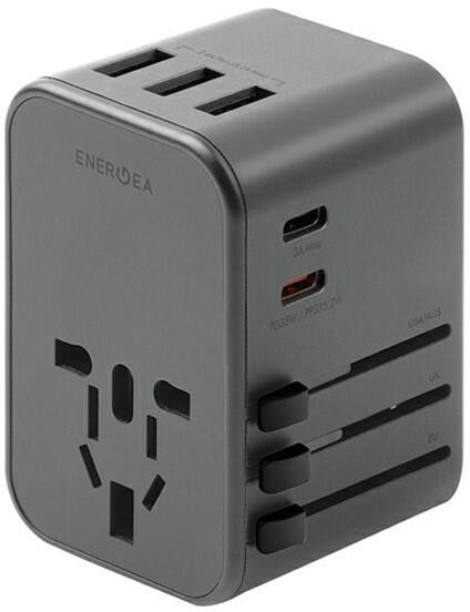 Univerzális, 5 USB-s utazási adapter amerikai/UK/AU/EU/Azsia hálózati csatlakozó átalakítókkal. Több, mint 150 leggyakrabban látogatott országban kompatibilis a csatlakozókkal. 2 USB-C + 3 USB-A utazási adapter amerikai/UK/AU/EU/Azsia kompatibilitással 35 W-os USB-C tápellátás kimenet Az AMPSMART technológia érzékeli az eszközök energiaigényét a leggyorsabb töltés biztos