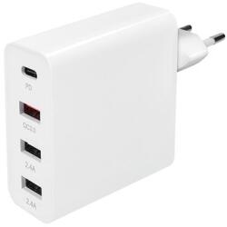 ADAPTER 3+1 töltőadapter 48W, 3x USB-A + USB-C bemenet: AC 100-240V, 50/60 Hz, max. 1.2A 1. kimenet: PD USB-C DC 5V/3A, 9V/3A, 12V/2.5A, 15V/2A 2. kimenet: QC3.0 USB-A DC 5V/3A, 9V/2A, 12V/1.5A 3. kimenet: USB-A DC 5V/2.4A 4. kimenet: USB-A DC