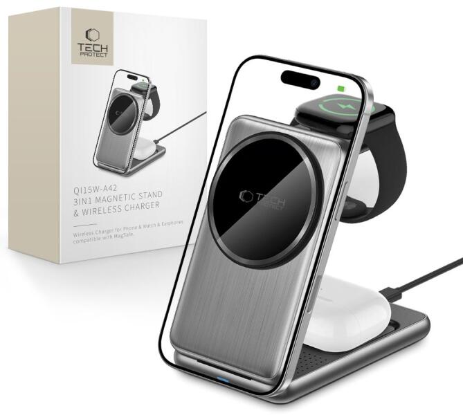 Ismerd meg a Tech-Protect QI15W-A42 innovatív töltőjét, amely ötvözi a stílust, a funkcionalitást és a sokoldalúságot. A készülék teljesen kompatibilis a MagSafe technológiával, amely garantálja az ideális illeszkedést és a stabil töltést az Apple márkájú készülékek számára. Az A42 támogatja az eszközök gyors töltését a Qi szabvány szerint, kínálva kimeneti t