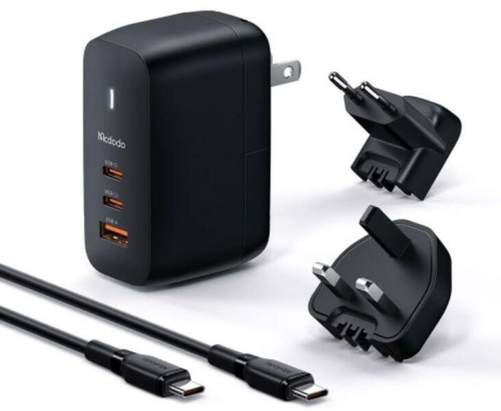 Mcdodo CH-8442 UK/US/EU mains charger, 2x USB-C + USB-A, USB-C cable 2m, 65W (black) The Mcdodo CH-8442 mains charger is the ideal solution for those looking for a fast and reliable power source for their devices. With a maximum power of 65W and three output ports (2x USB-C and 1x USB-A), it allows you to charge up to three devices simultaneously, offering incredible versatility and convenience, b