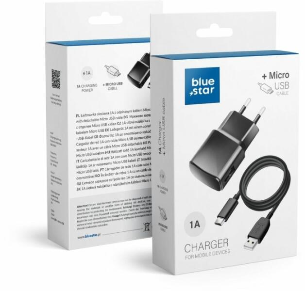 Hálózati Töltő Micro Usb 1A+Kábel Tulajdo nságok: Csatlakozó : Micro usb Kábel hossza: 1,13m Áramerősség: 1A Bemeneti feszültség: 230V Kimeneti feszültség: 5V